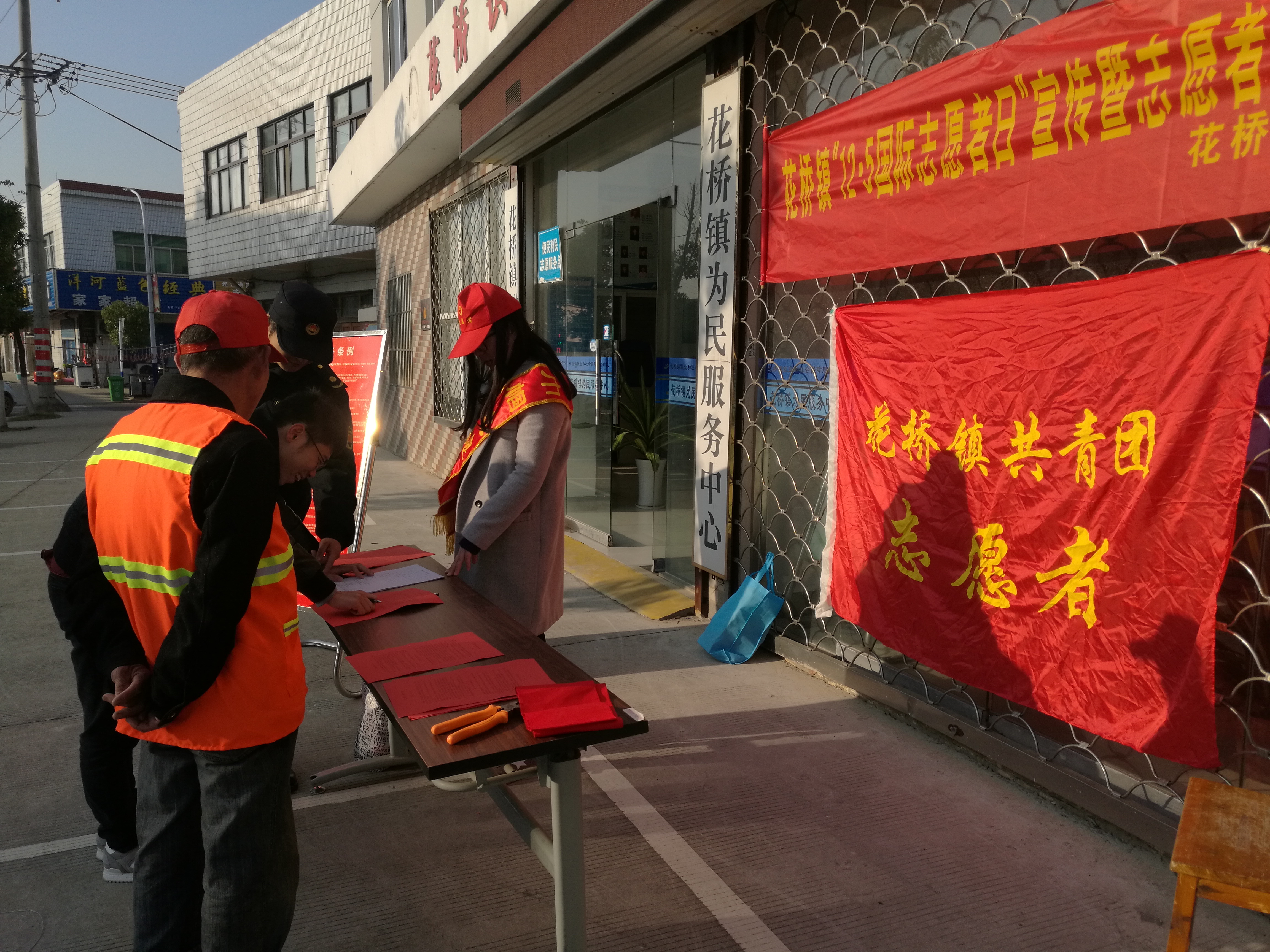 为了唤起更多年轻人以志愿者的身份从事社会事务,加入为人民群众服务的行列中来,花桥镇团委在12月5日国际志愿者日当天,积极组织青年志愿者,开展宣传、服务活动。